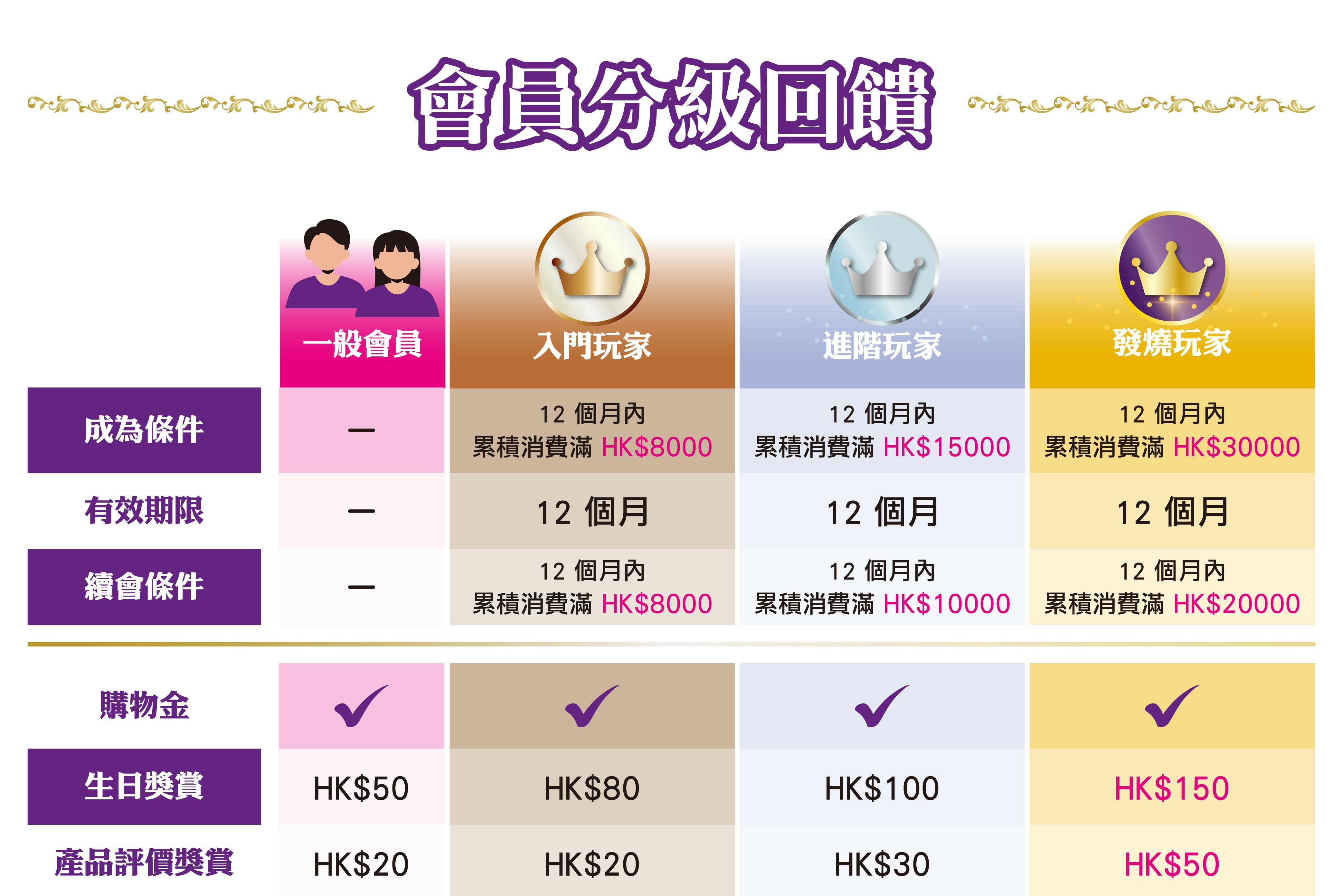 (不同級別會員將有回饋金額及門檻差別,購物車中將有相關資訊提示)