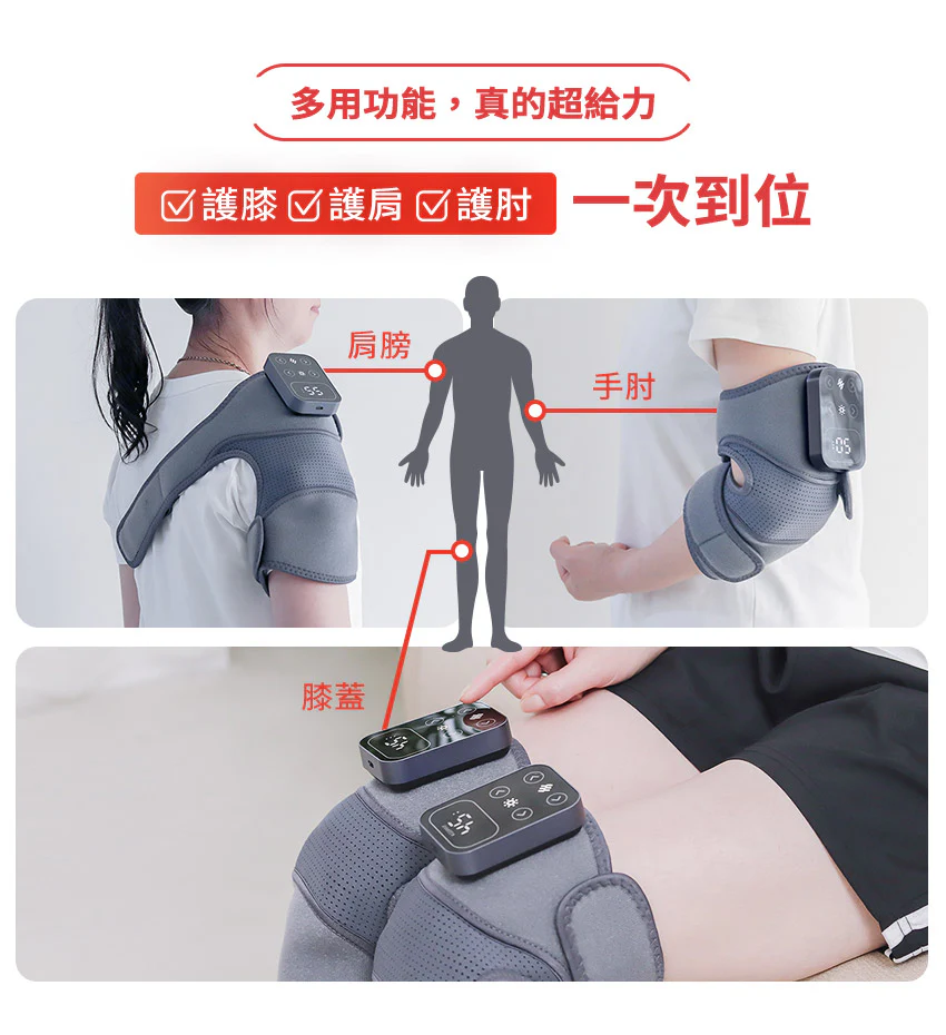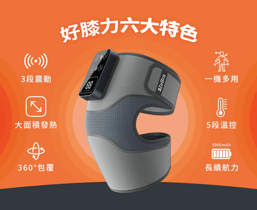 膝蓋痛? 3zebra推出溫感膝部按摩器,大面積熱敷,一機多用,無論膝蓋、肩膀定手肘位置一樣可能使用,有內袋位置還可以放藥包熱敷,360度包圍,而且還有三個震動模式!