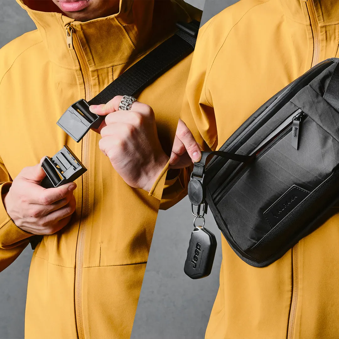 Bravo Sling Mini V2 擁有堅固的磁力帶扣,即使在繁忙的通勤途中也能確保您的物品牢固扣緊,而且只需簡單滑動即可輕鬆解鎖。