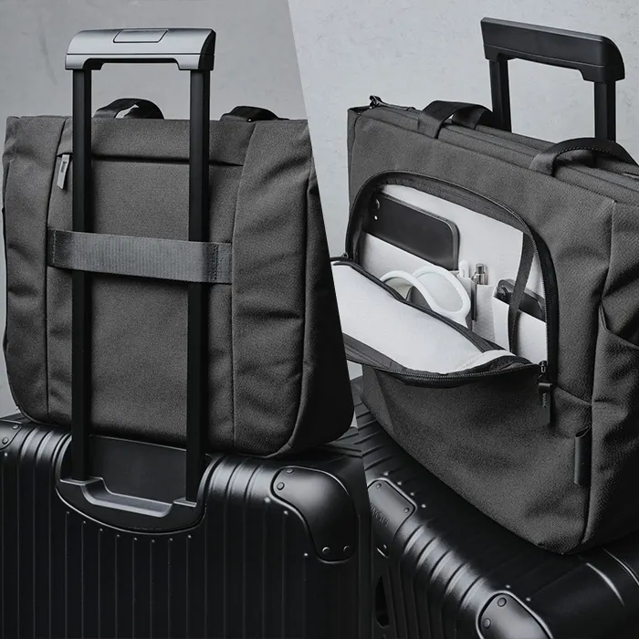 隨時解放您的雙手,您可以將手提包的行李通道滑到行李箱把手上,暢遊機場。另外,手提包可以獨立站立,因此您不必擔心您的裝備掉落。