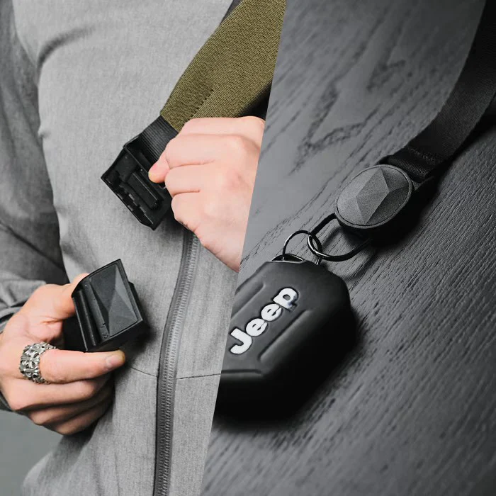 Go Sling 的優質磁力扣環可在您繁忙的通勤期間確保物品安全,而且可以透過滑開將其快速取下。