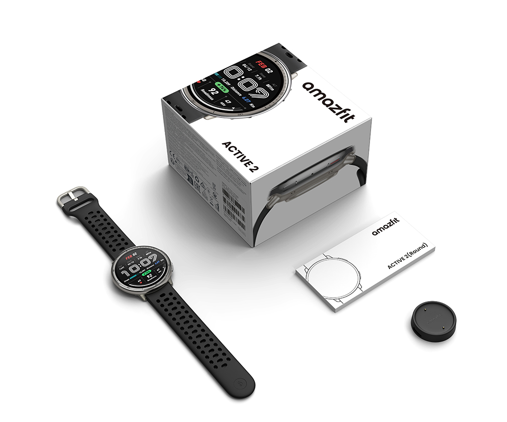 That's why your Amazfit Active 2 will come packaged16 in 100% recyclable materials, with a charging base (USB Type-C compatible) in the box - but no cable, to reduce waste on our side and extra cords at home on your side.