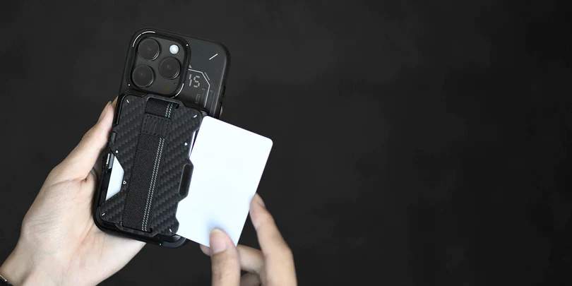 帶有碳纖維蓋的 G03 MagSafe 金屬錢包是一款優質 EDC 配件,專為那些優先考慮輕質耐用性、風格和功能的人士而設計。 它配有方便使用的工具、手機支架、開瓶器和迷你尺。 這款皮夾由鋁合金製成,具有極強的抗日常磨損能力。 碳纖維蓋不僅增添了時尚和未來感的美感,也增強了整體結構的完整性。