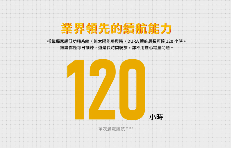 ・太陽能充電 1 小時,可延長 2 小時使用時間