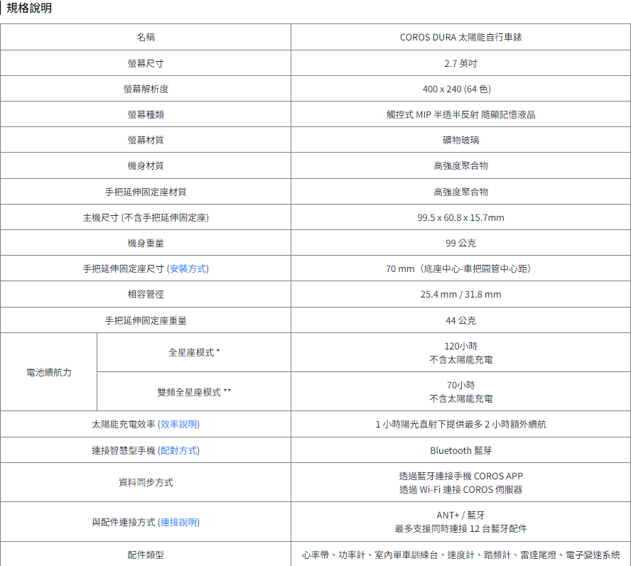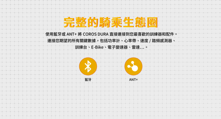 ・支援藍牙和 ANT+ 與各廠牌裝置連線