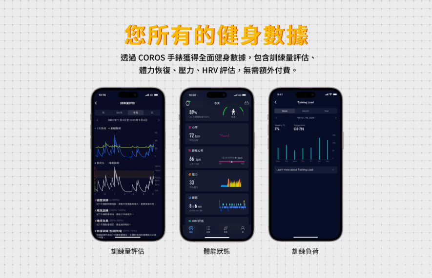 ・透過 COROS 手錶、心率帶,可獲得全面的運動資訊