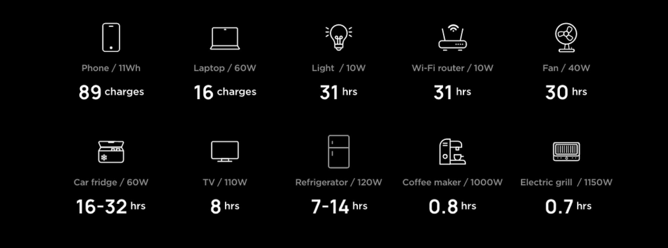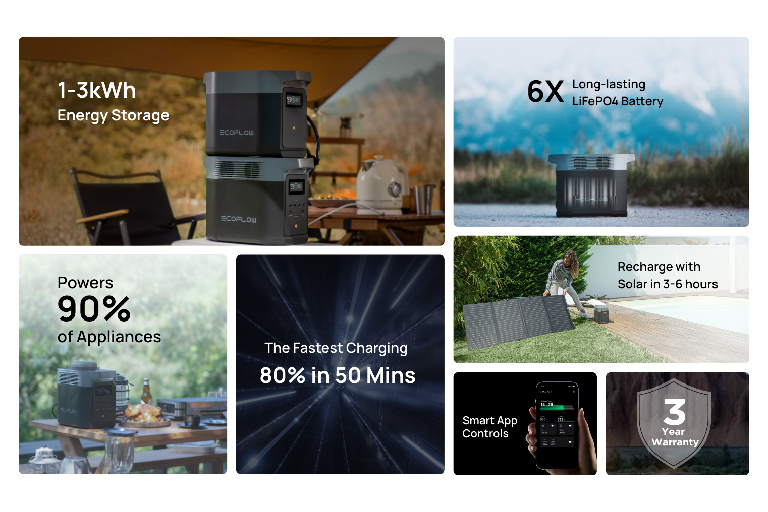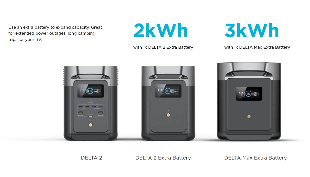With a capacity of 1kWh to start with, you've got enough energy for your essentials for hours on end. Need even more? Add on the DELTA 2 extra battery to reach 2048Wh, or add on the DELTA Max Extra Battery to hit 3040Wh. Great for home backup or everyday appliances.