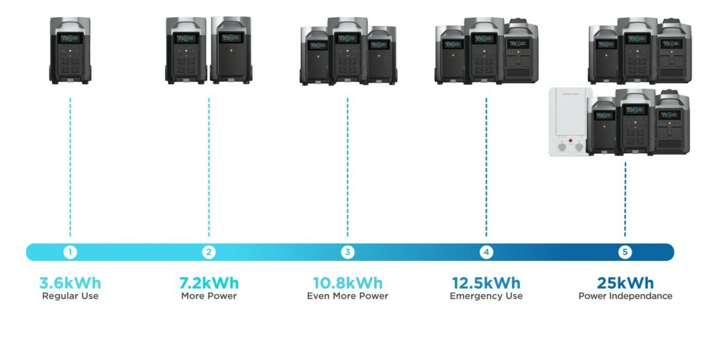 *由多台DELTA Pro 及附加電池的組合, 見下圖