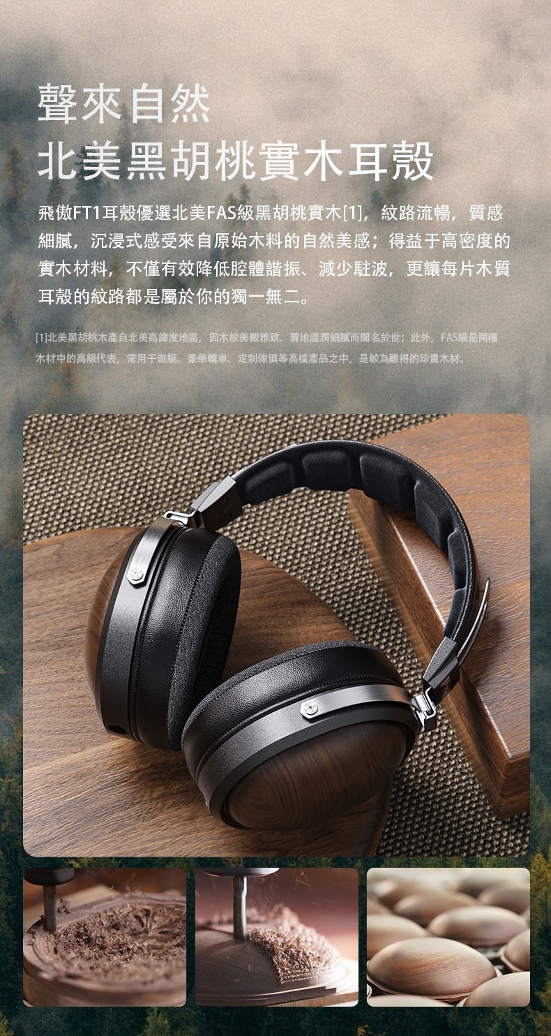 為契合整體的聲學設計與高級別聽感,與以往的化學工藝合成膜片不同,FT1採用納米木纖維複合振膜[2],由特選紙質纖維與輕量化PU懸邊複合而成,具有出色的高頻延展性與瞬態回應,聲音乾淨俐落、結象清晰,為您提供紙振膜特有的甜美、潤澤、高密度的中頻人聲;綜合FT1的封閉式聲學調教與聲學裝置,三頻諧然一體,聲韻淳美;讓聲學如美學般,在「紙」上化境入臻。