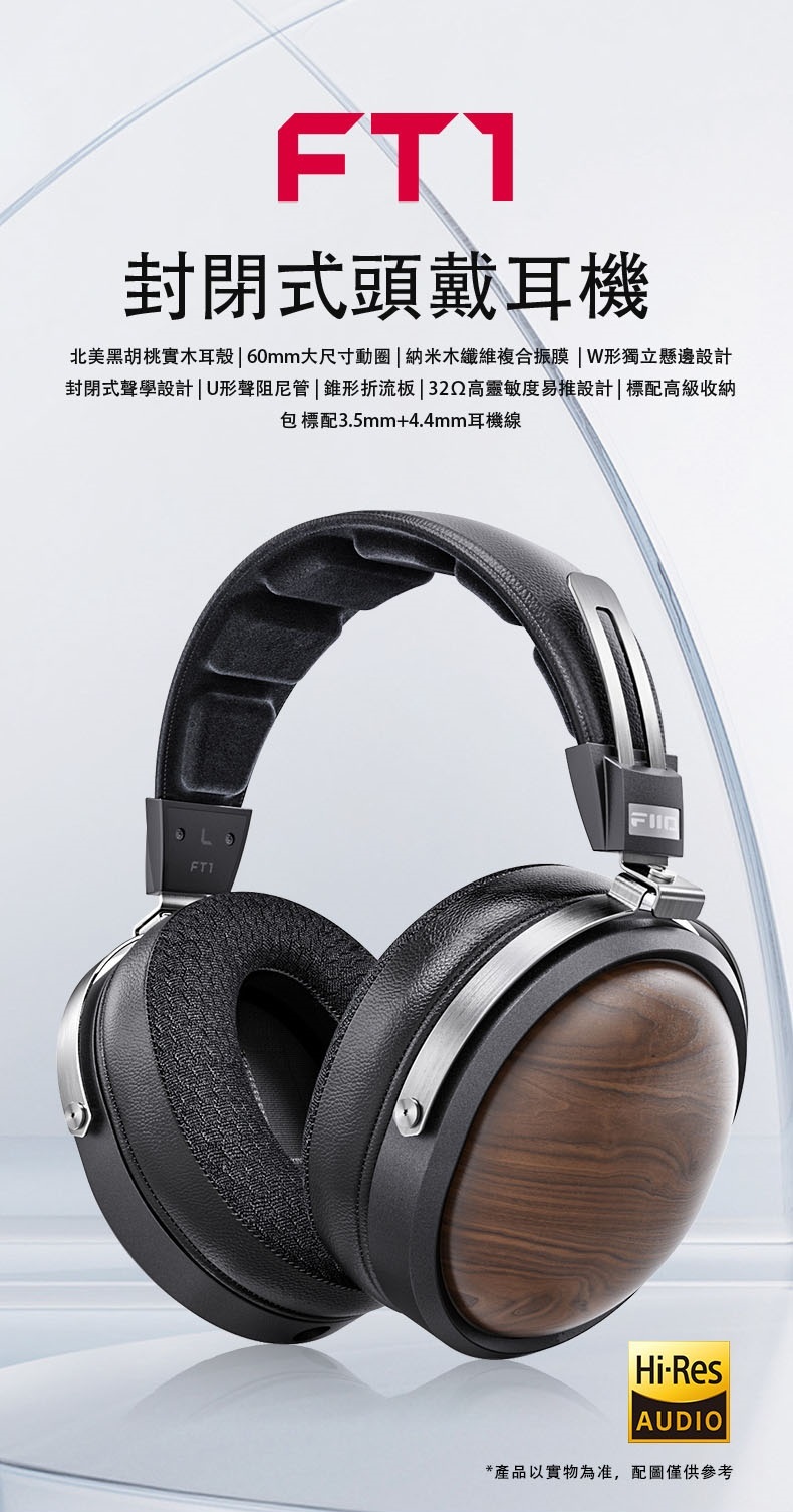FiiO FT1封閉式HiFi頭戴耳機- 26dB物理隔音