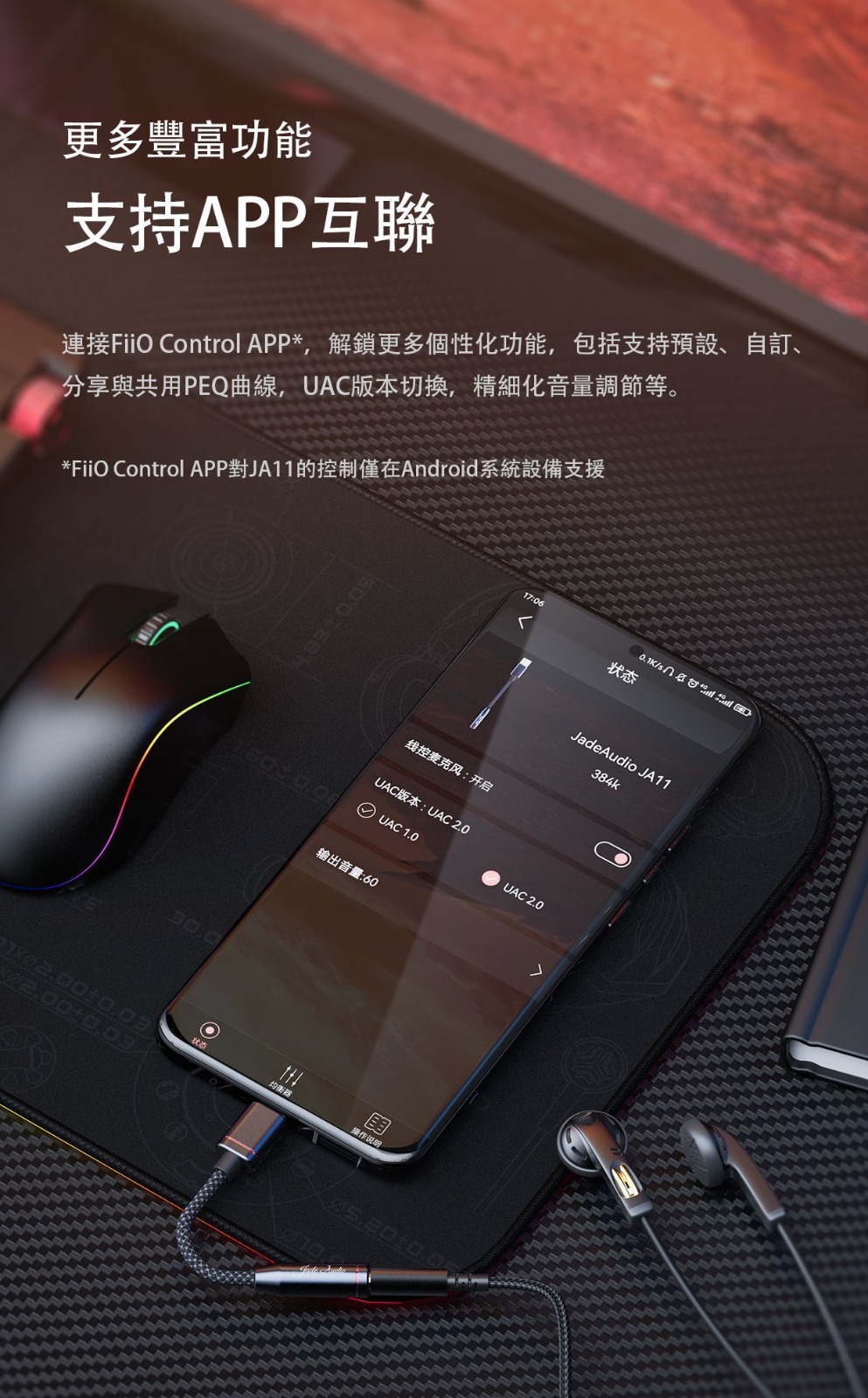 連接FiiO Control APP*,解鎖更多個性化功能,包括支持預設、自訂、分享與共用PEQ曲線,UAC版本切換,精細化音量調節等。 *FiiO Control APP對JA11的控制僅在Android系統設備支援