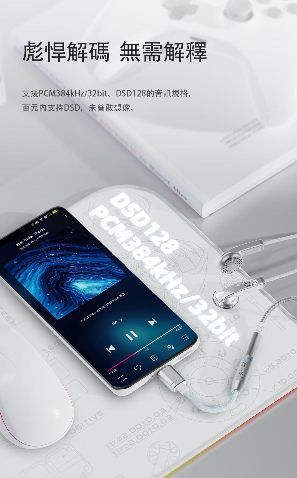 支援PCM384kHz/32bit、DSD128的音訊規格,百元內支持DSD,未曾敢想像。