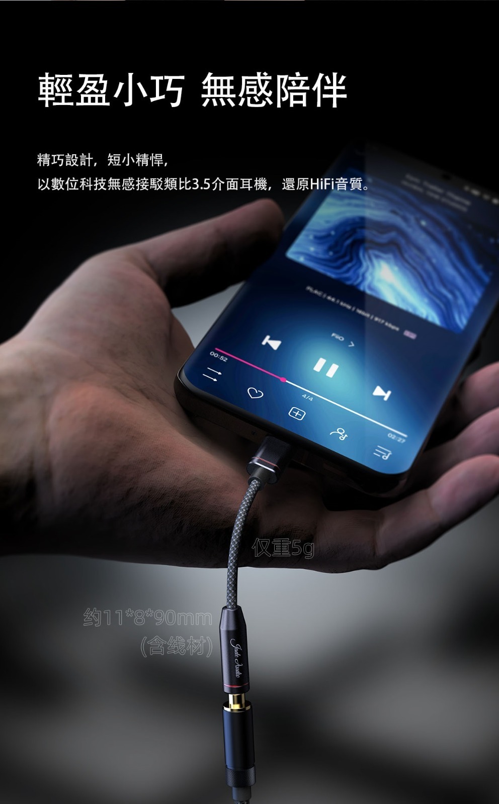 精巧設計,短小精悍,以數位科技無感接駁類比3.5介面耳機,還原HiFi音質。