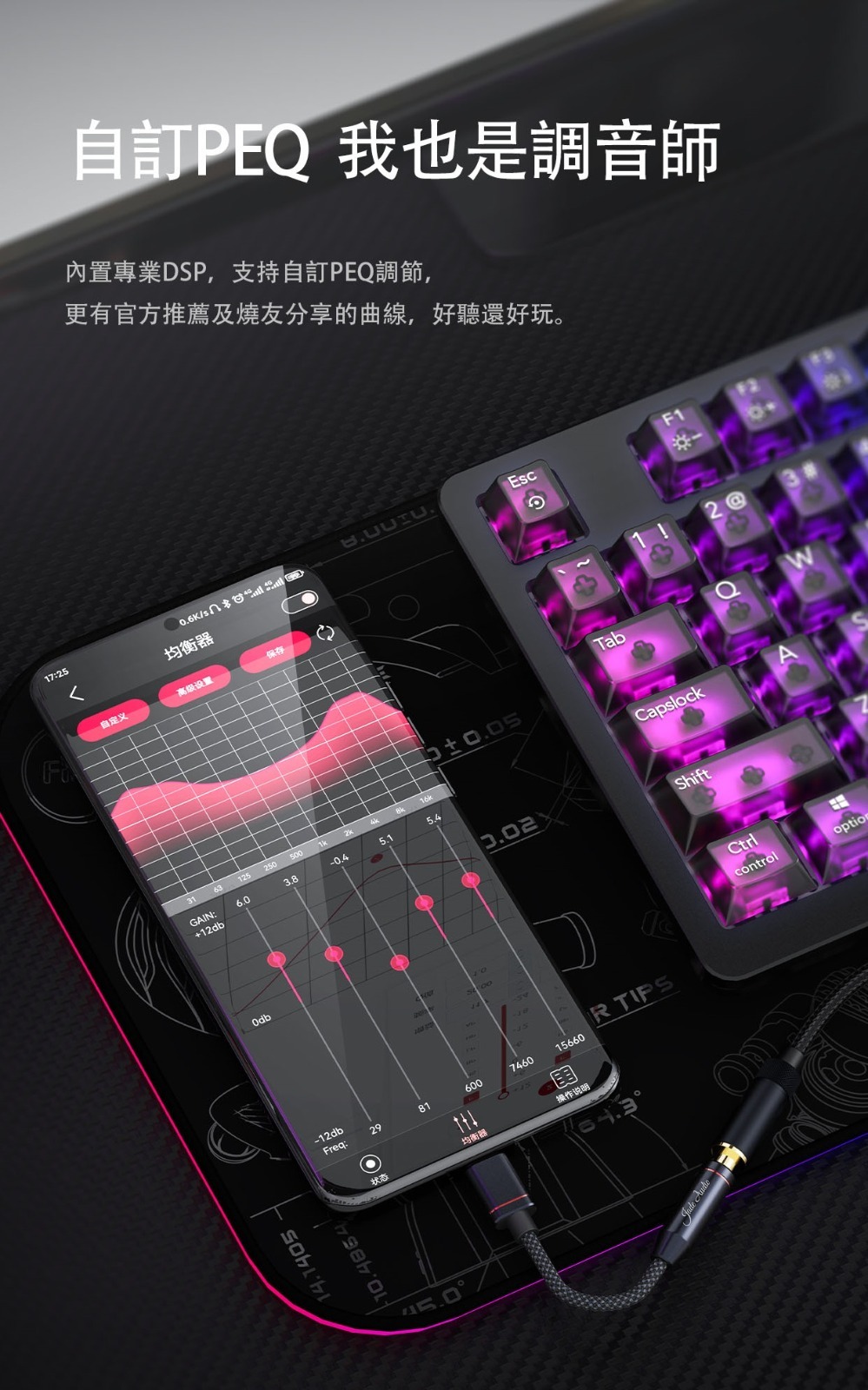 內置專業DSP,支持自訂PEQ調節,更有官方推薦及燒友分享的曲線,好聽還好玩。