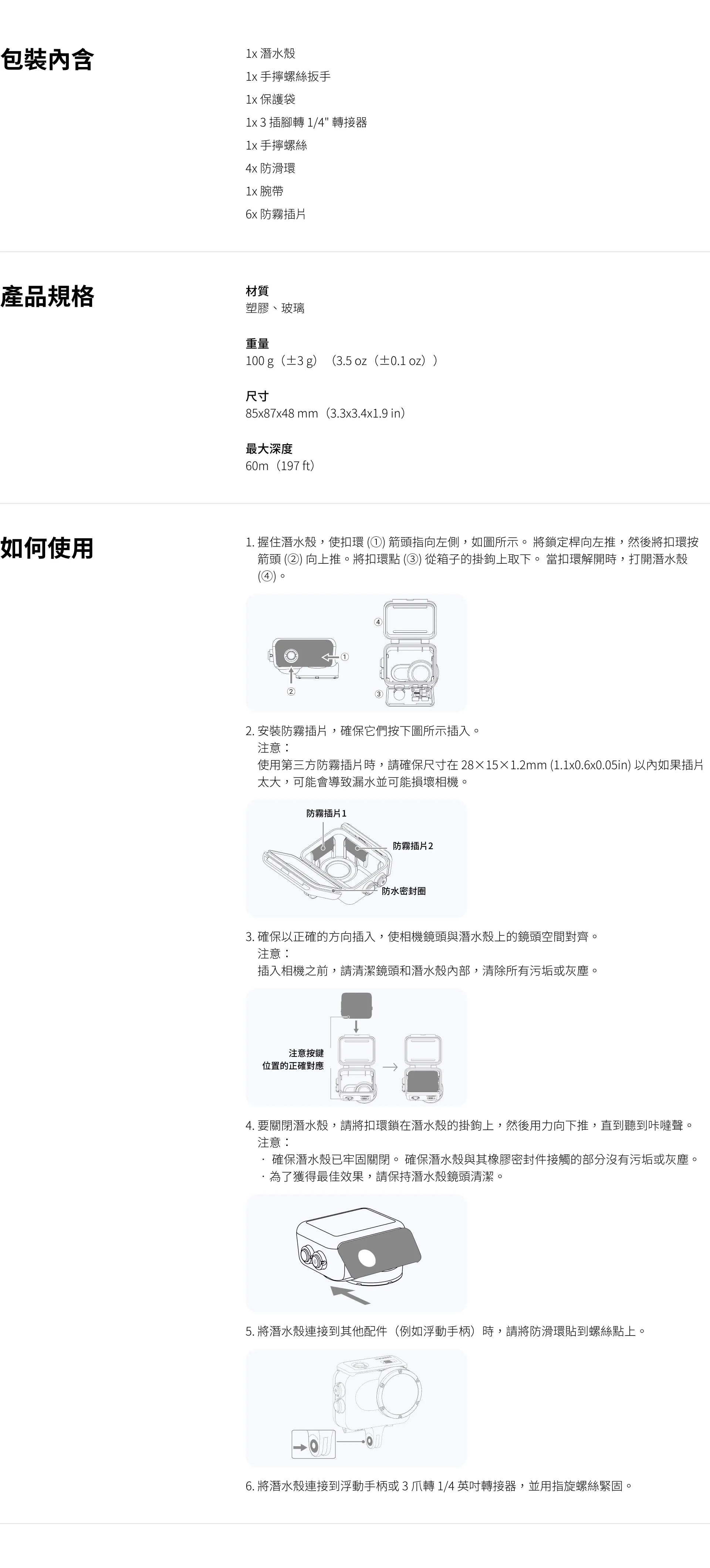 配有潛水殼,防水深度可達60米 (197 英呎)。