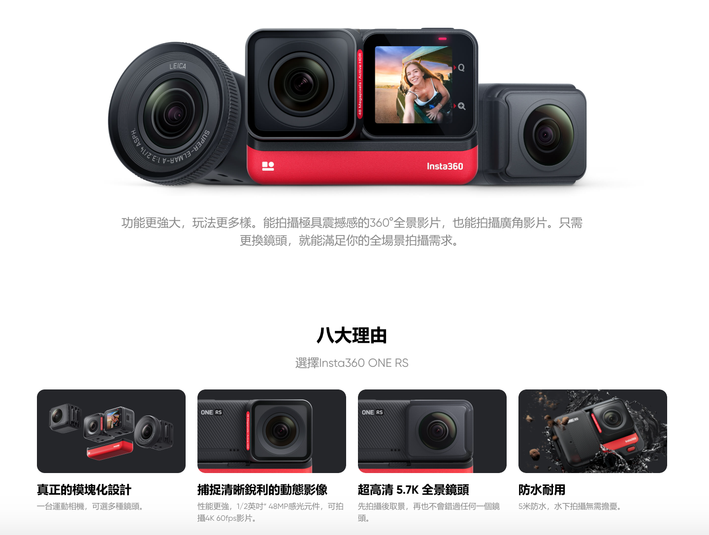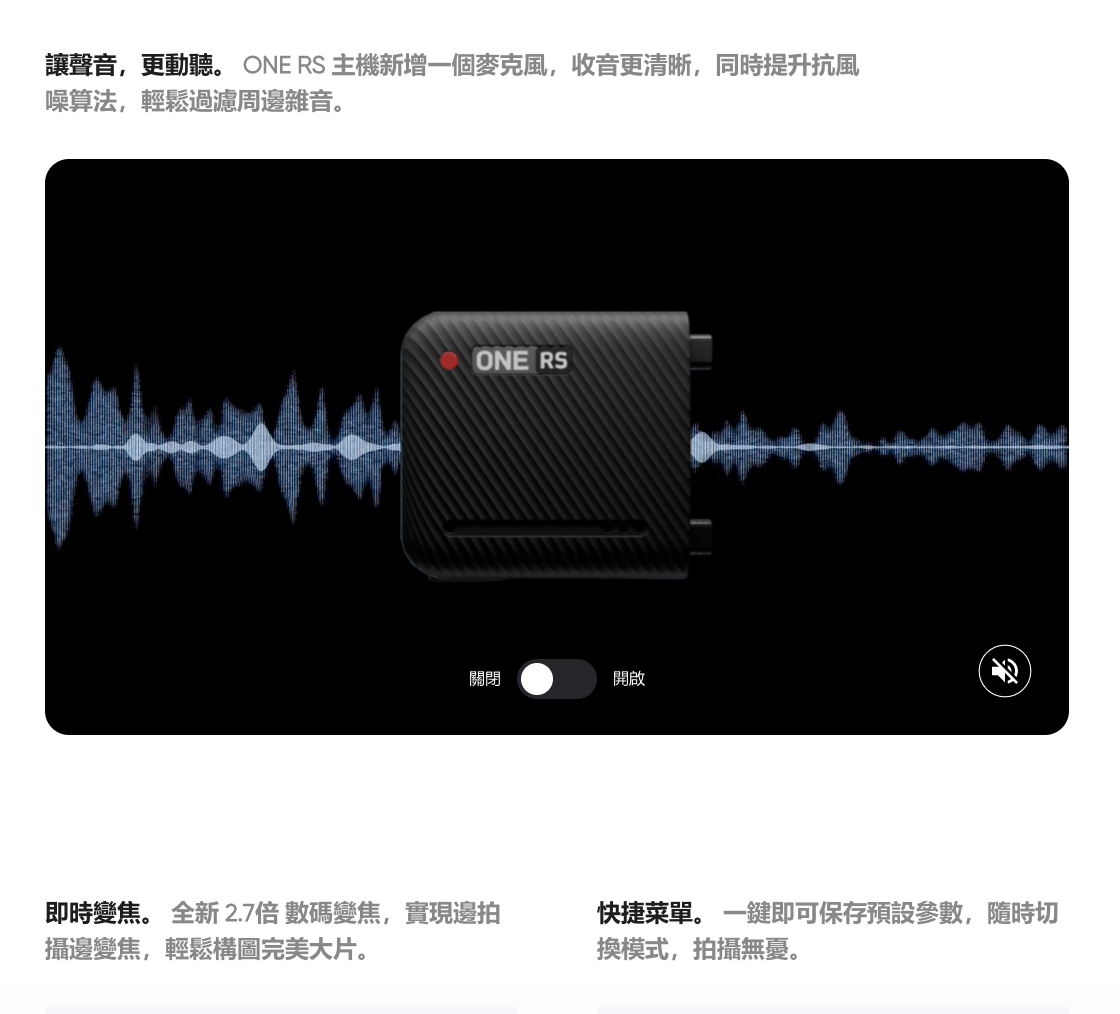 標準套裝包括1x 4K 廣角增強鏡頭、1x ONE RS 主機、1x ONE RS 電池底座和1x ONE RS 保護邊框。