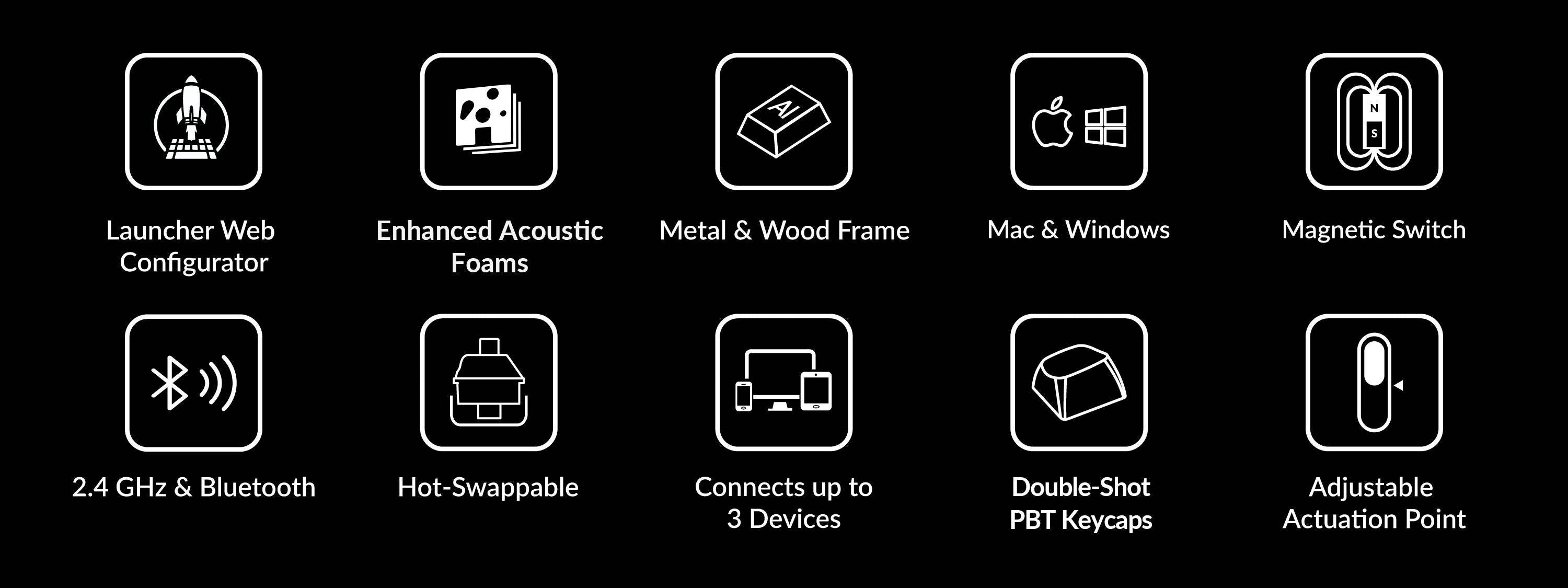 完全可自訂的 96% 佈局無線鍵盤,具有磁軸 - 開關技術的突破,它使用磁性感測器來測量驅動深度而不是物理接觸,讓您完全控制每個開關的響應。