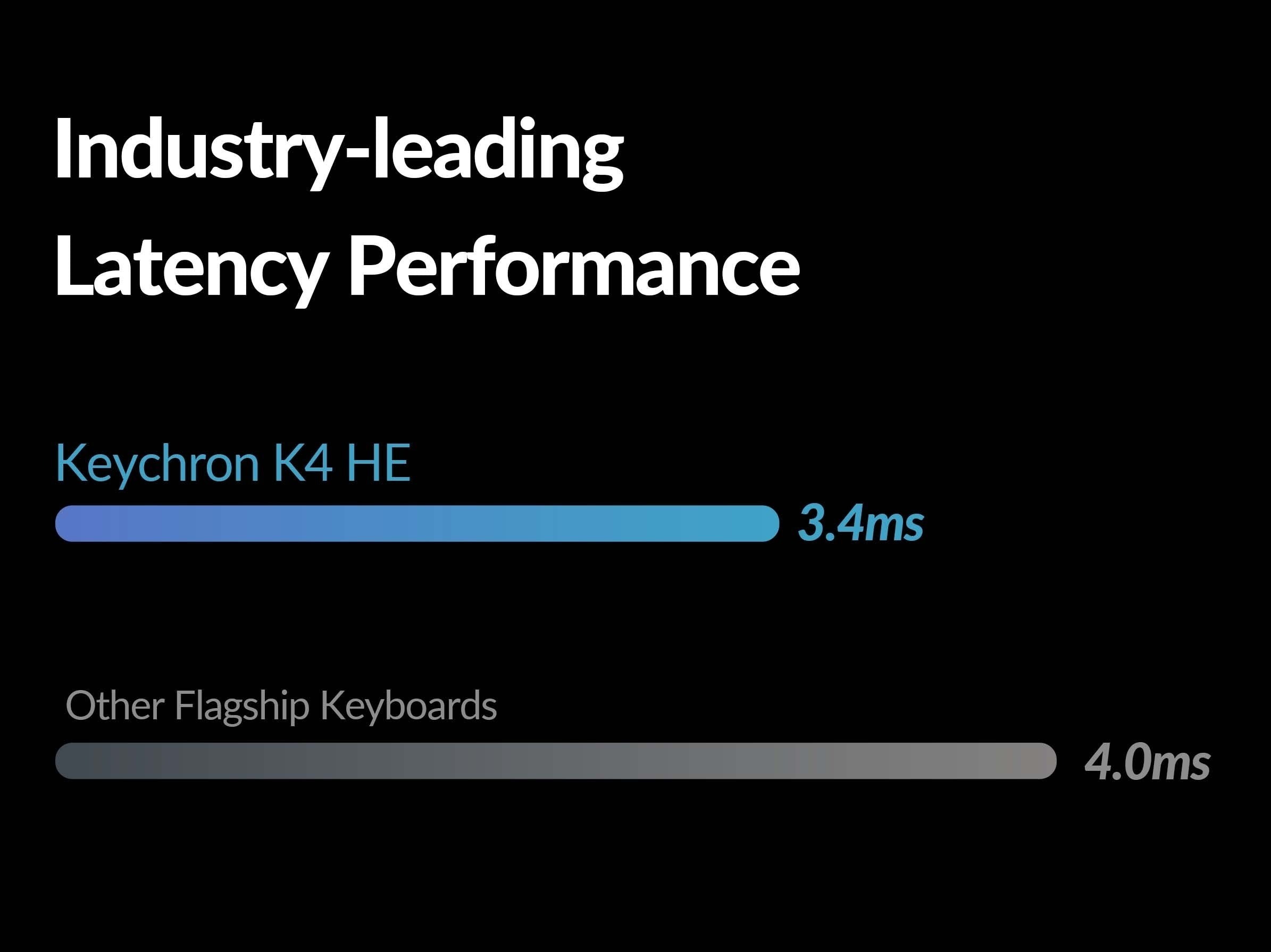 K4 HE 鍵盤在同類產品中具有出色的延遲性能,優於業界其他旗艦鍵盤。