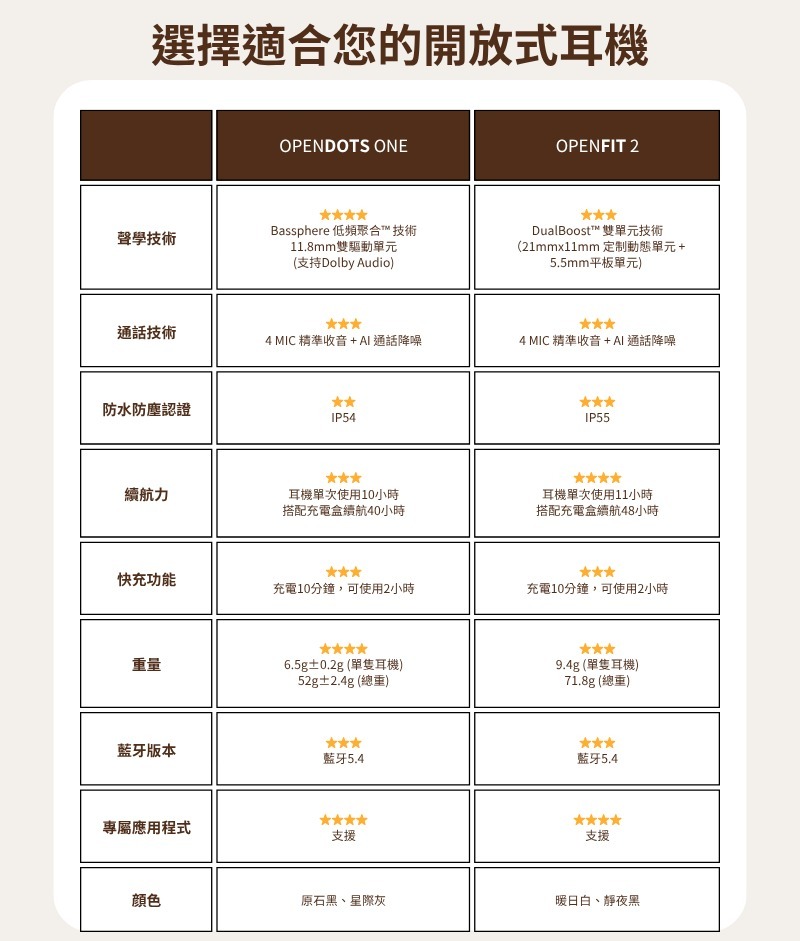OpenDots ONE 配備無線充電功能,耳機單次使用可達10小時播放時間,搭配充電盒更可延長至旗艦級40小時續航。支援10分鐘快速充電即可提供2小時播放,讓您隨時享受音樂不間斷。