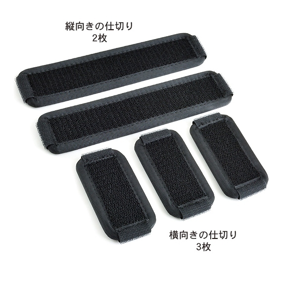 垂直和水平分隔板的兩側均有 Velcro(硬表面)。