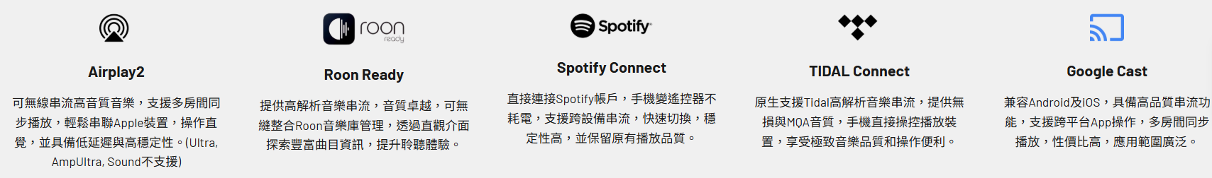 喜歡用原生 App?也支援 Spotify Connect、TIDAL/Qobuz Connect、Alexa Cast、Google Cast、Roon、DLNA 無縫投放