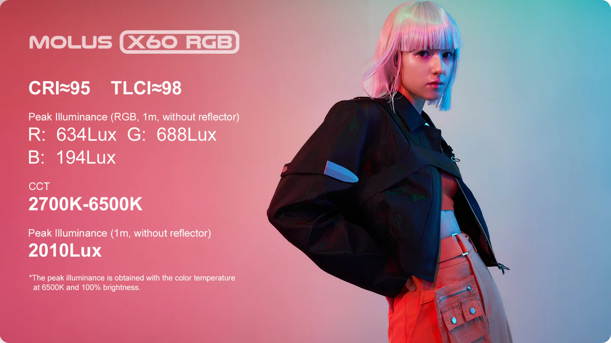 The ZHIYUN MOLUS X60 series is the smallest 60W full color COB cinematography light on the market, it can easily fit into a backpack or shoulder bag. Despite its toy-like size, the light boasts professional quality and texture.