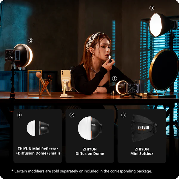 The ZHIYUN MOLUS X60 series is compatible with ZHIYUN's range of power and light accessories. These accessories are not only compact and lightweight but also easy to disassemble, making them ideal for outdoor shoots.