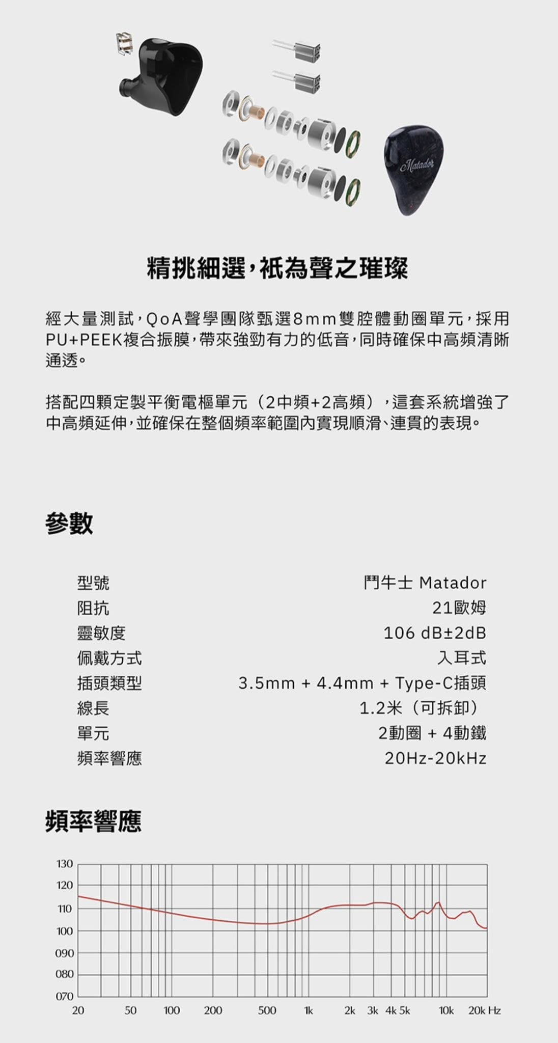 Queen of Audio (QoA) Matador 兩圈四鐵入耳式耳機